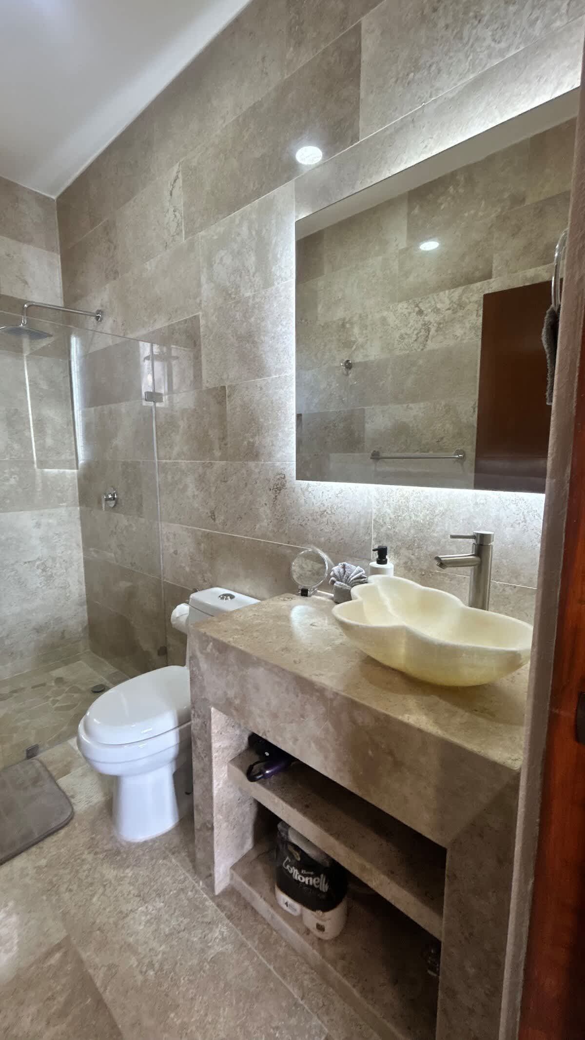 - Shared outdoor shower