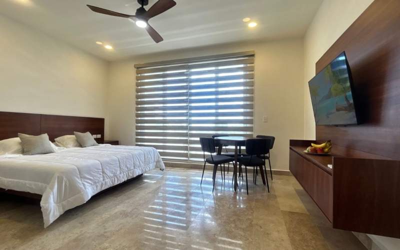 Discover the best of Playa del Carmen from our stylish studio in Itzamna. Featuring a luxurious king size bed and a comfortable sofa, the space extends to a lovely balcony with captivating city views. Take advantage of the fantastic rooftop amenities, including a sparkling pool, a jacuzzi and a BBQ area for entertaining. Situated in an ideal location, you’re just a short and convenient <10-minute walk to the beautiful Playa 72 and the lively Coco Beach. Book your unforgettable stay today!