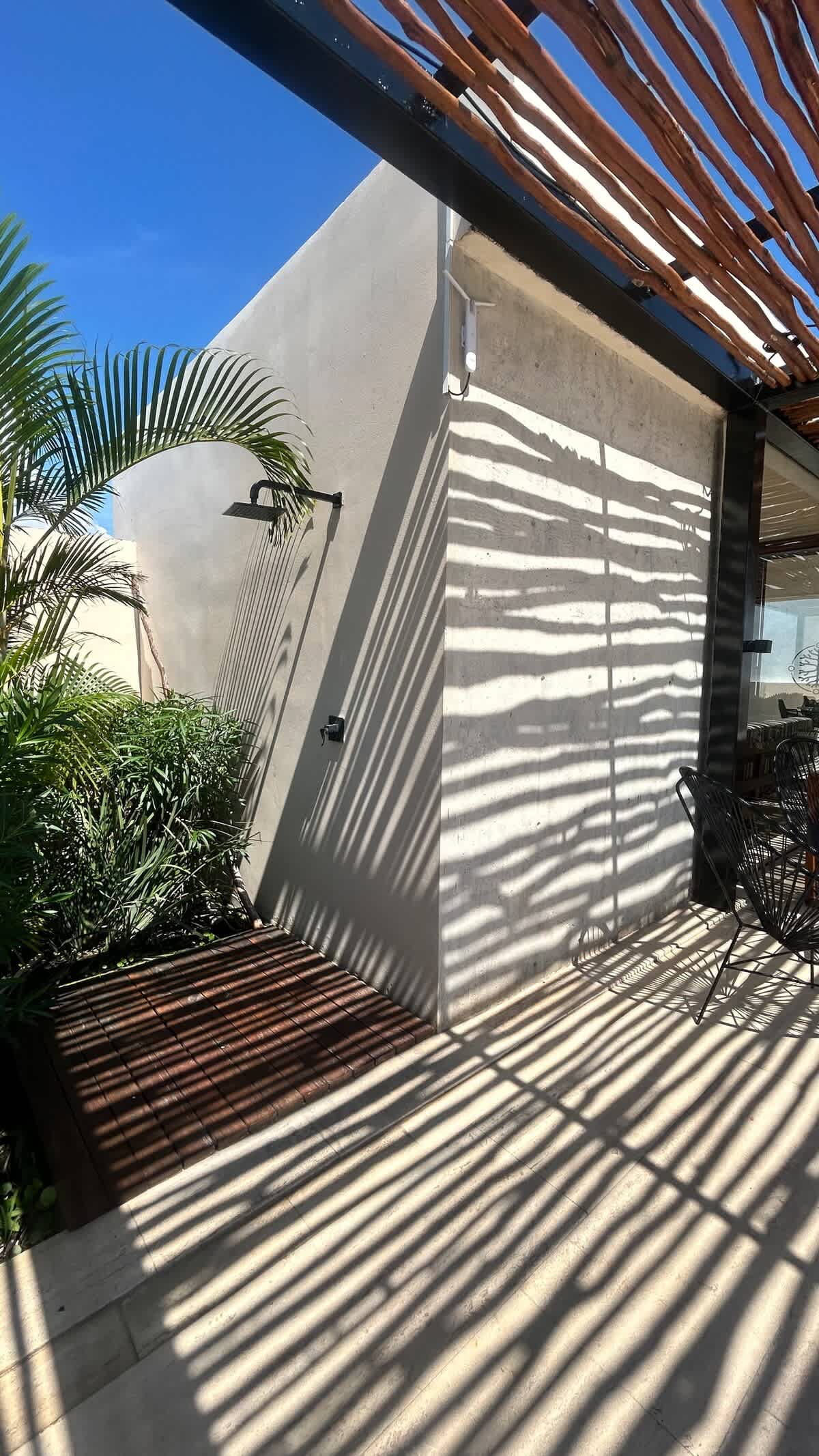 - Shared outdoor shower