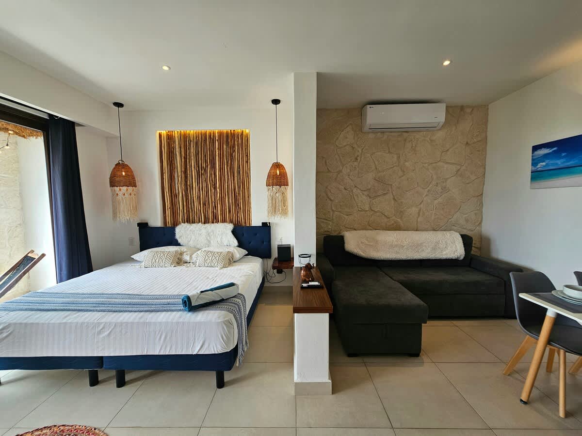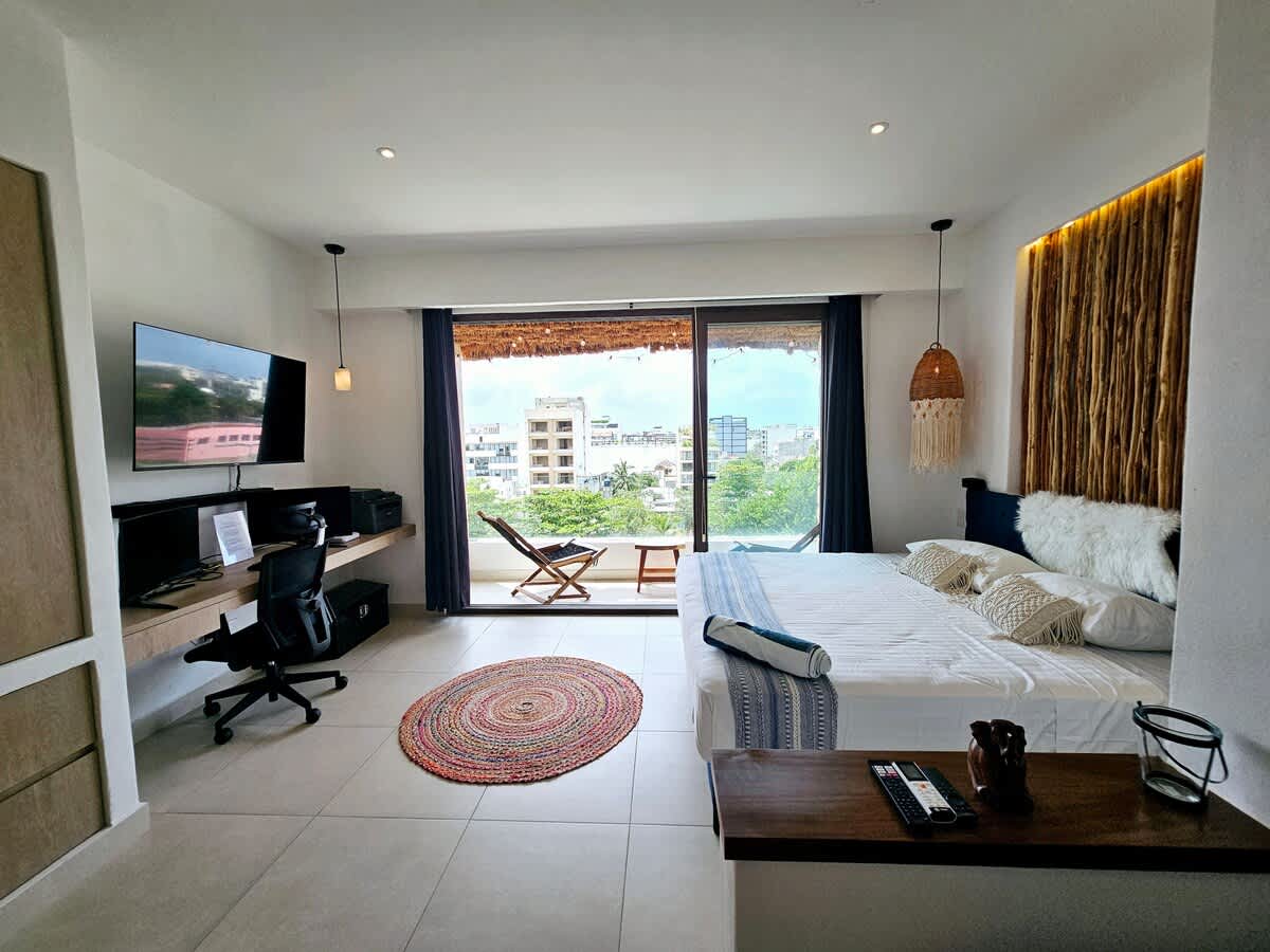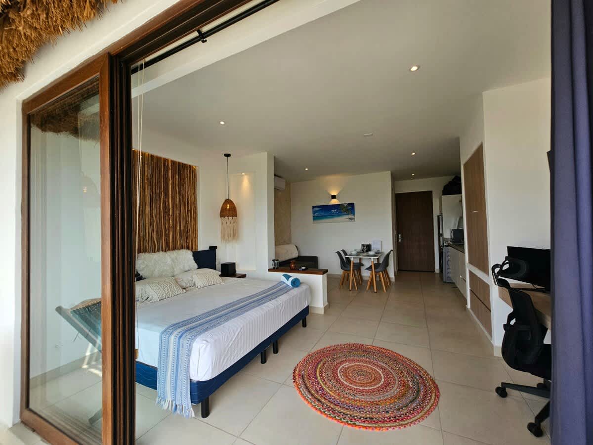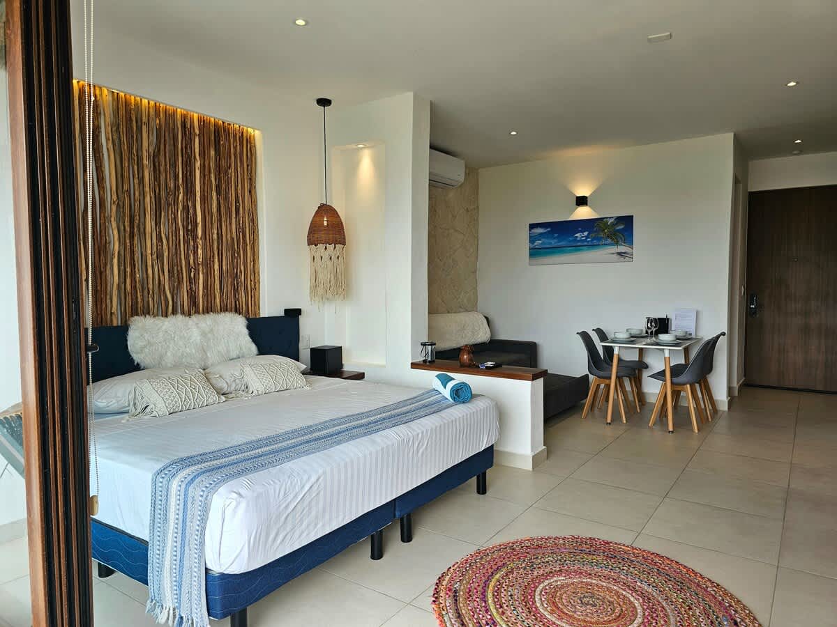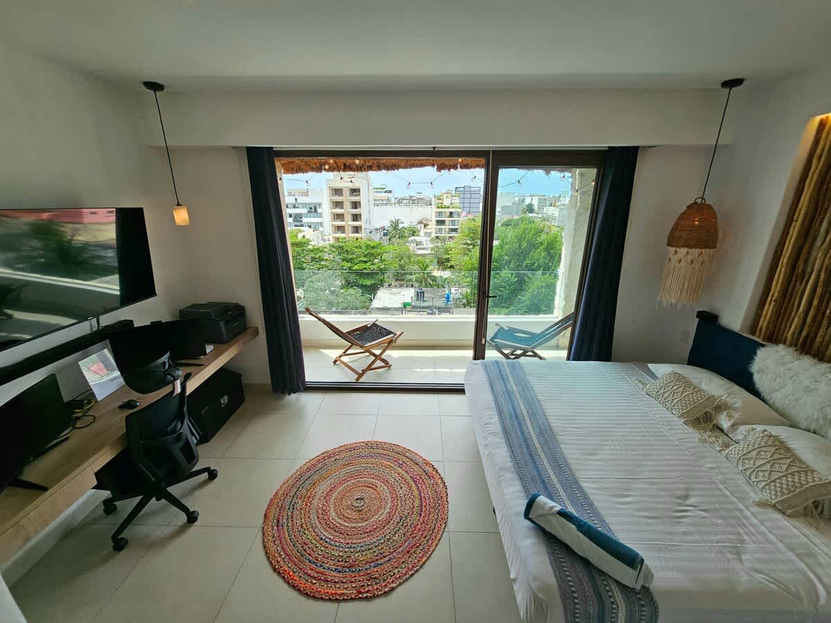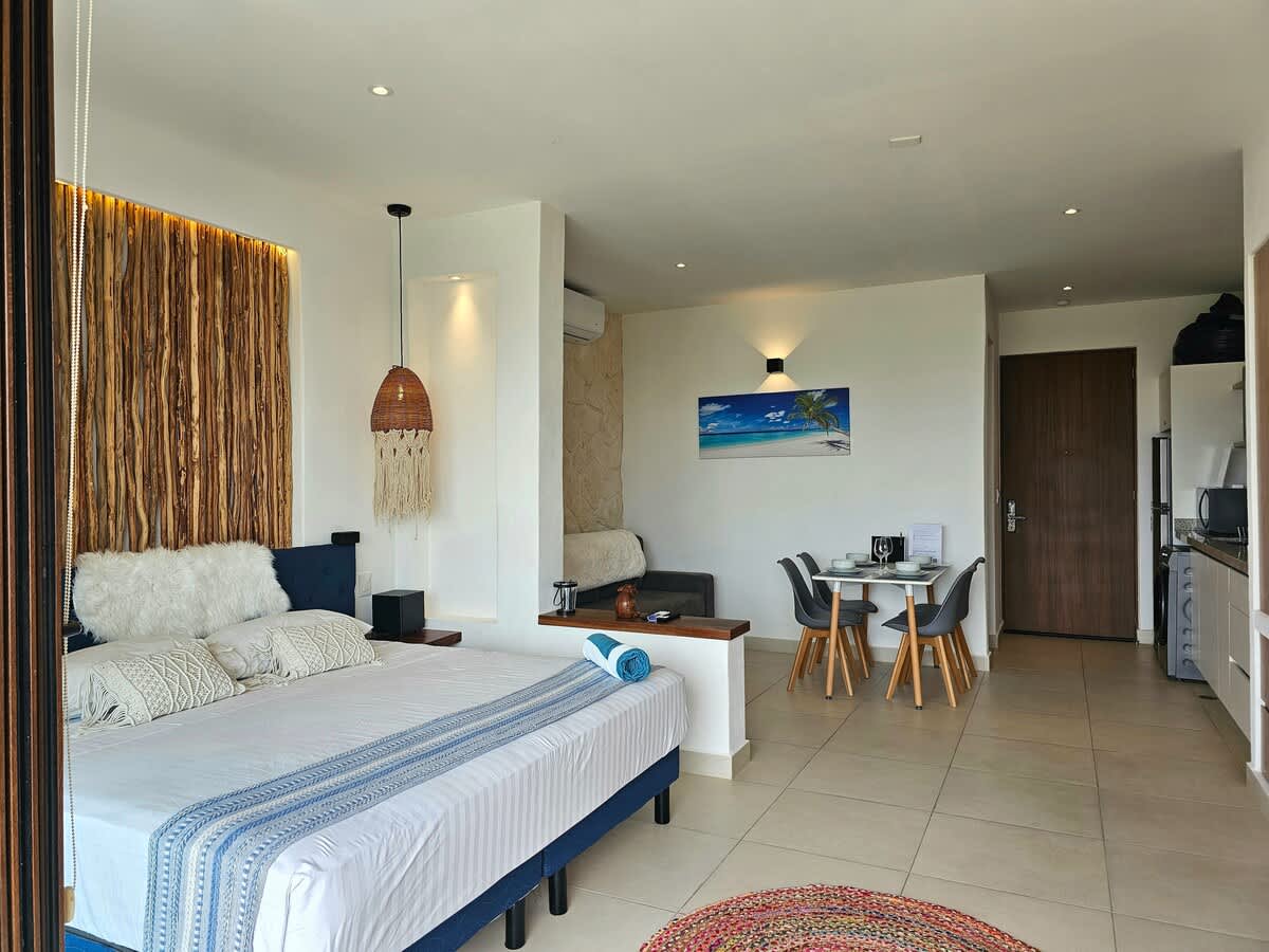 This modern studio boasts a stunning 5th-floor balcony with breathtaking ocean views 🌊