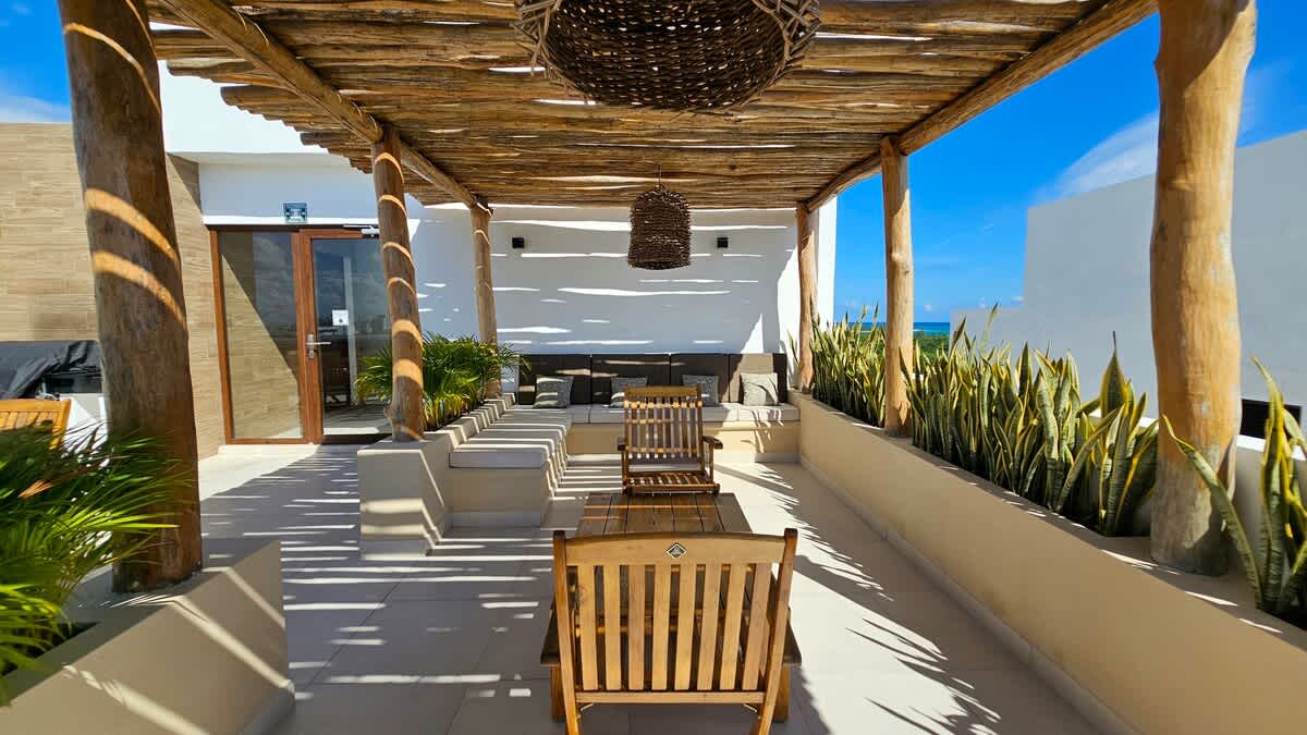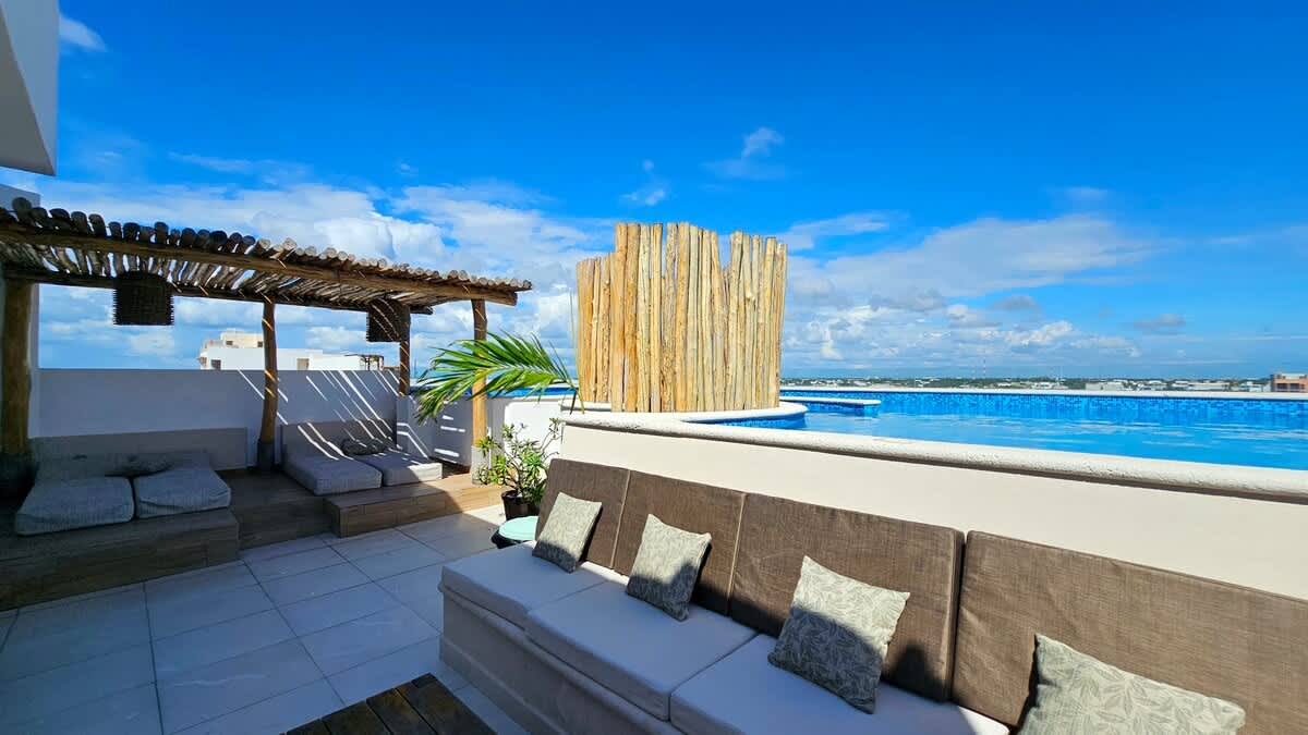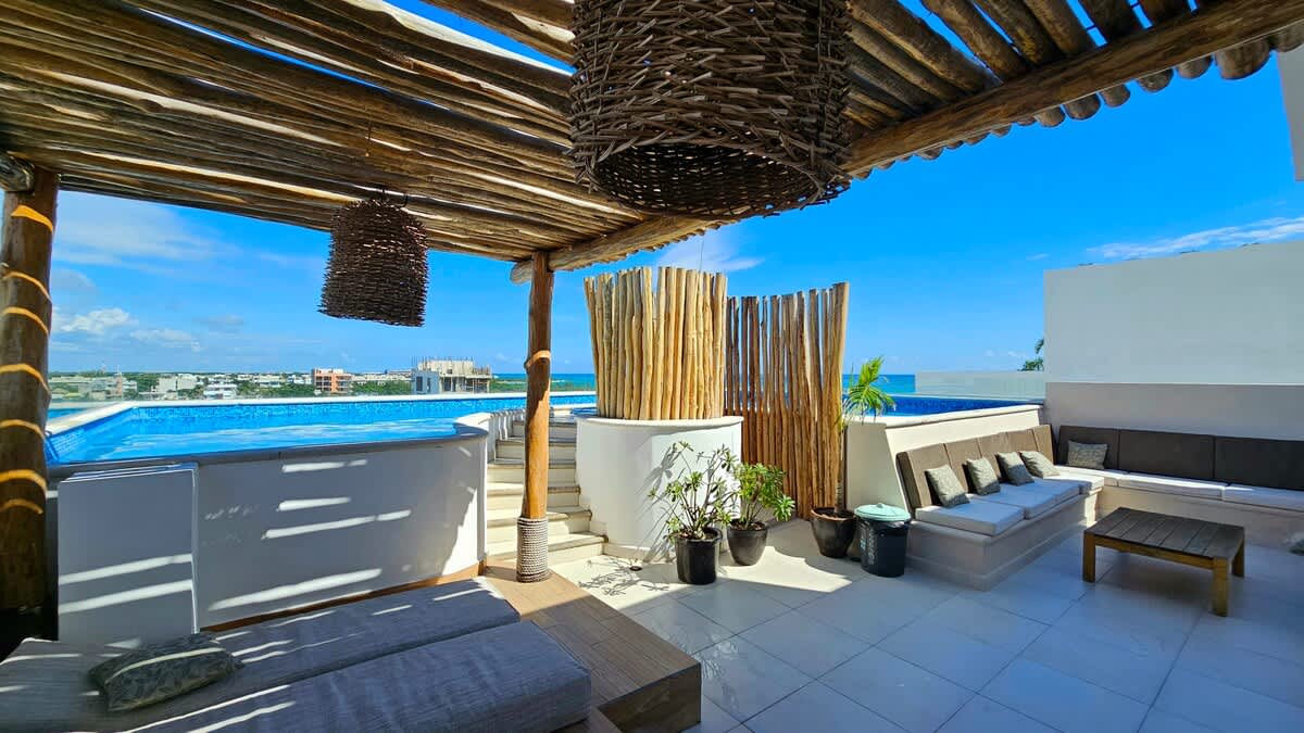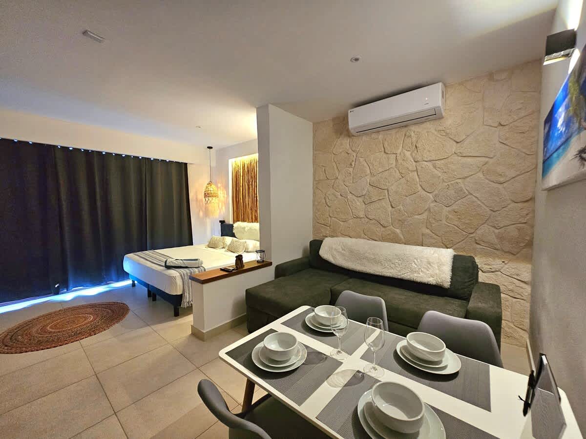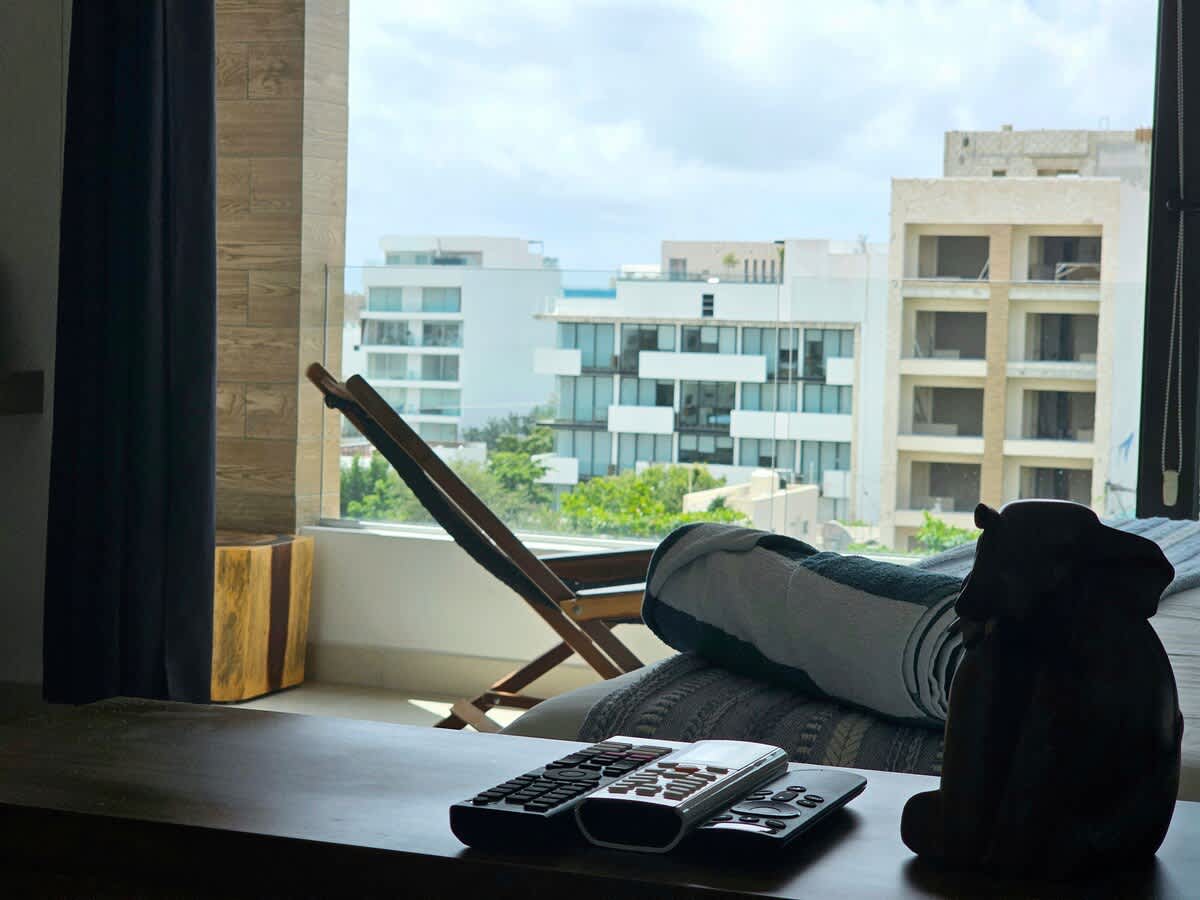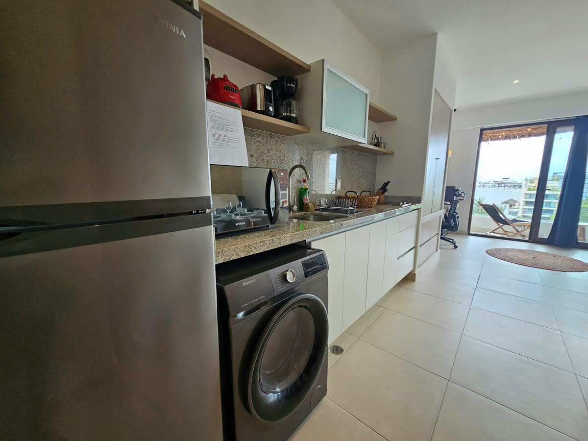This modern studio boasts a stunning 5th-floor balcony with breathtaking ocean views 🌊