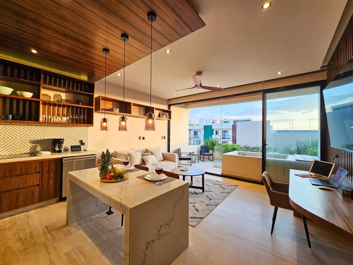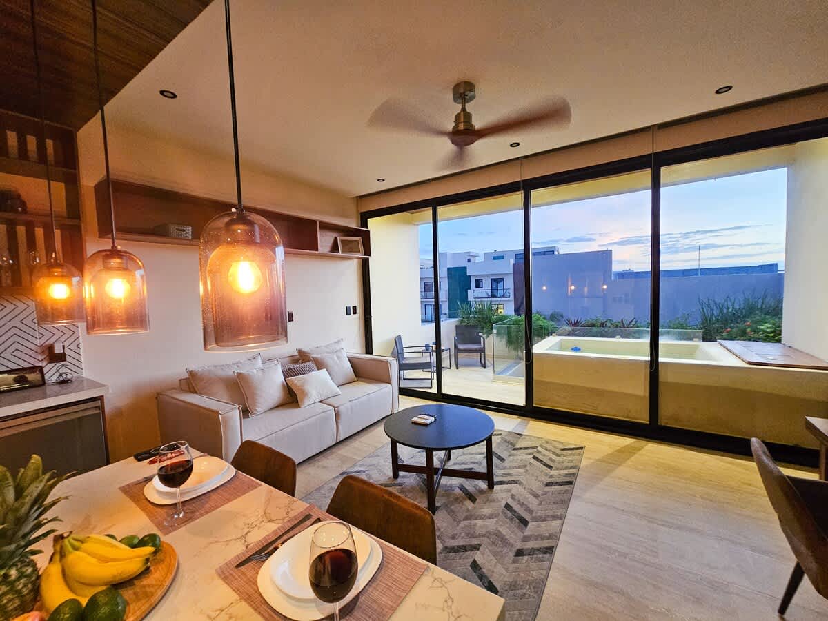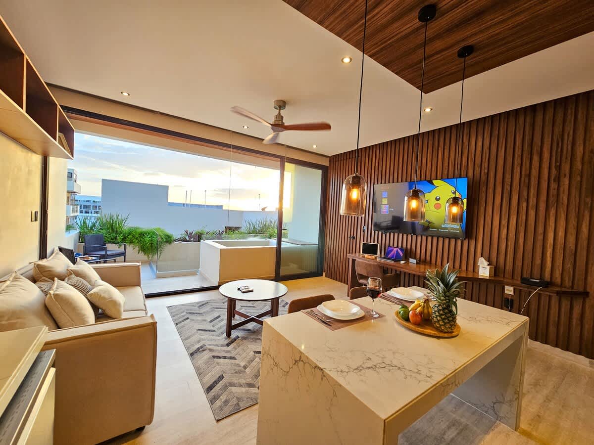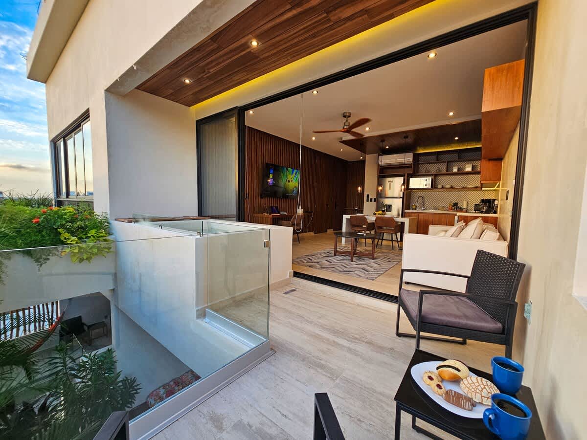 Indulge in luxury and technology at our brand-new 2-bedroom penthouse with Alexa in Playa del Carmen’s vibrant Zazil Ha neighborhood.