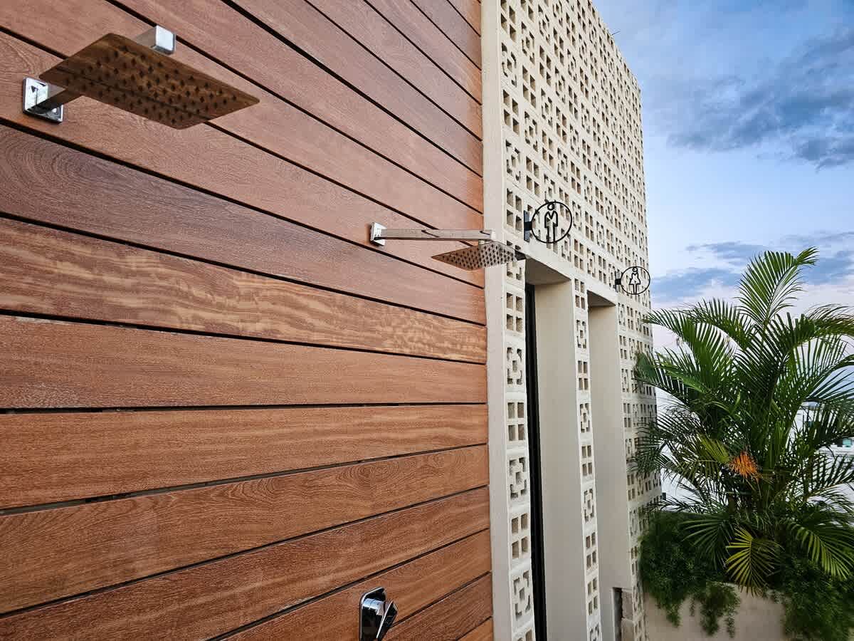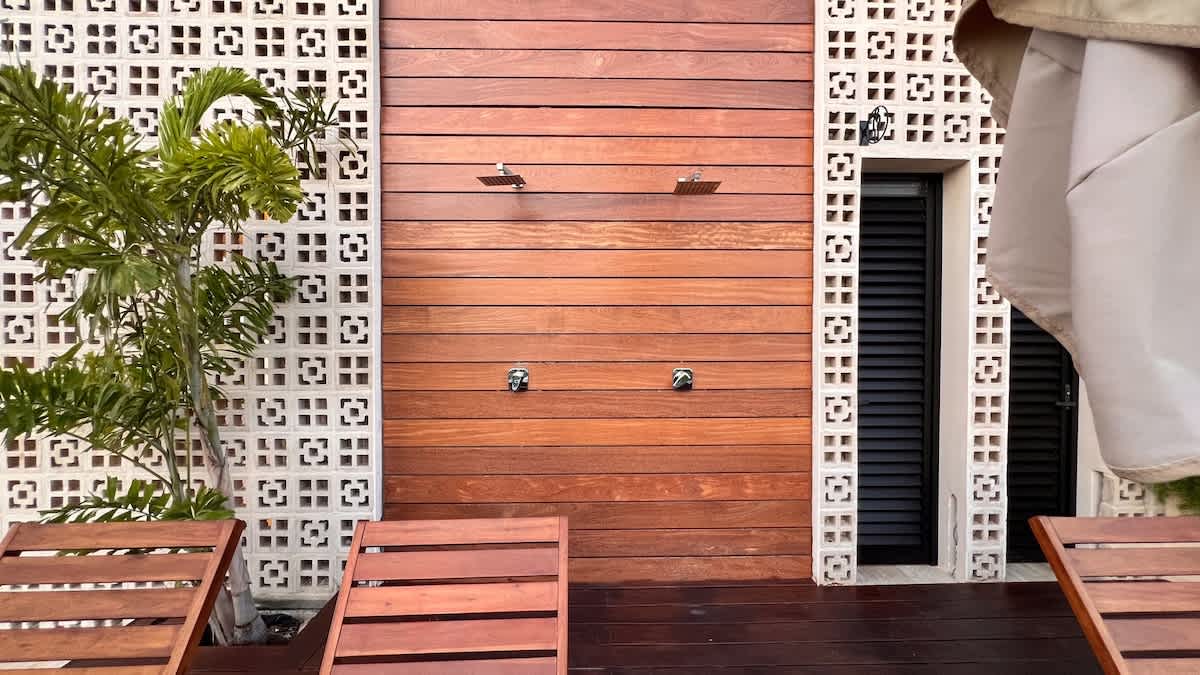 - Shared outdoor shower
